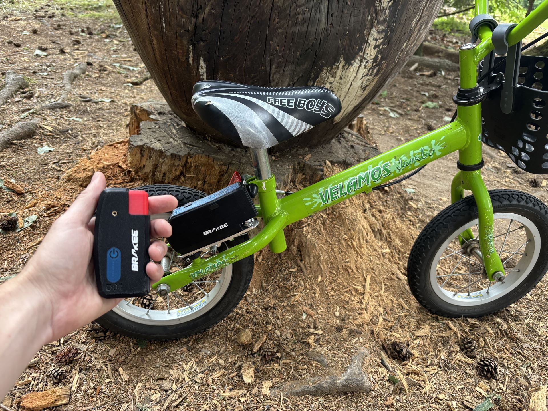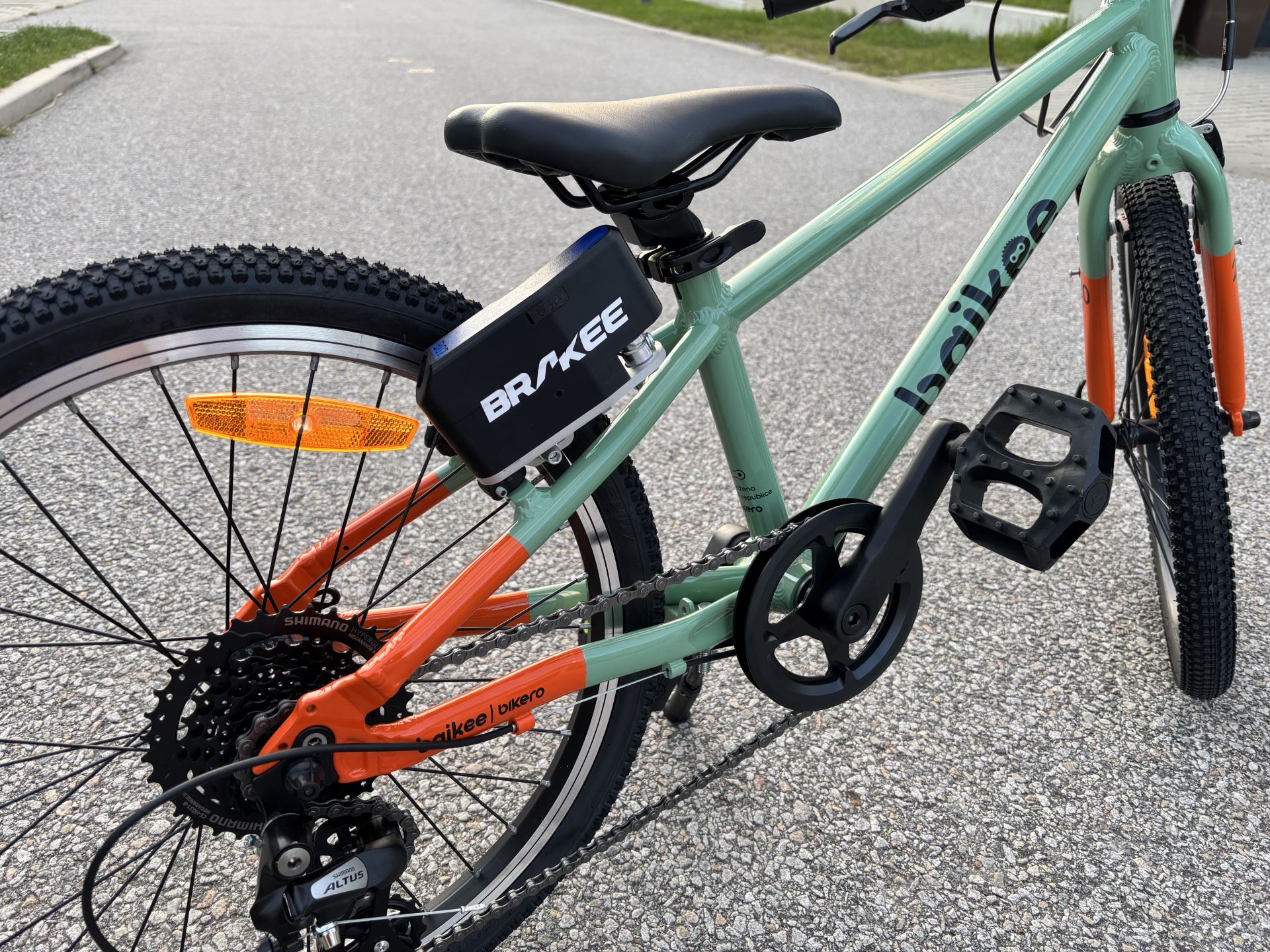 Brakee je elektronická brzda pro dětská kola a odrážedla, kterou ovládáte dálkově. V krizové chvíli umožní přibrzdit nebo zastavit dítě a zabránit pádu. Hodí se na všechna kola se zadní V‑brzdou, snadno se přenáší a nijak neomezuje běžné brzdění.